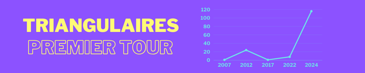 Il y a eu plus de 300 triangulaires au premier tour des législatives anticipées. Une triangulaire c’est quand 3 candidat·es accèdent au second tour. Pour rappel, lors des élections législatives, sont qualifié·es pour le second tour les candidat·es qui obtiennent un nombre de voix au moins égal à 12,5% du nombre des électeurices inscrit·es.